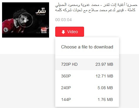 هذا فيديو حاولت تحميله عبر موقع سناب تيوب بدون برنامج وها انا اقوم بإختيار الجودة التى أريدها
